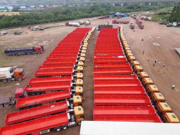 山东华劲侧翻自卸车批量交付,祝广西扬航运输有限公司生意兴隆,出车大吉!